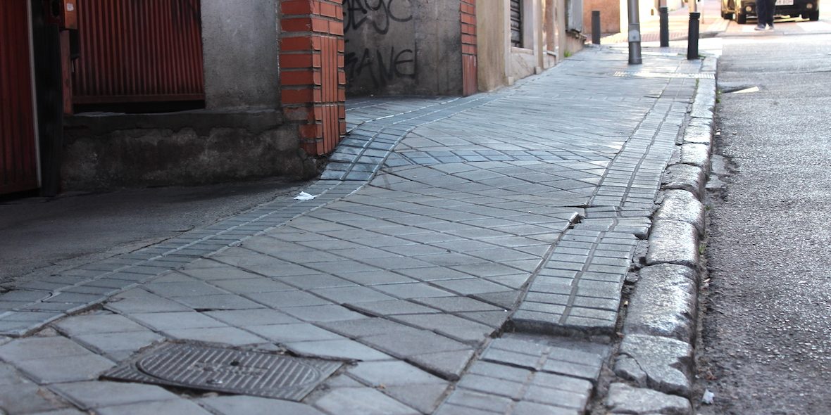 - Muchas aceras no cumplen con la normativa (ancho entre 1,50/1,80 cm. o como máxima excepción de 1,20 cm): encontramos aceras de menos de 50 centímetros haciendo difícil distinguir entre acera o un simple escalón.